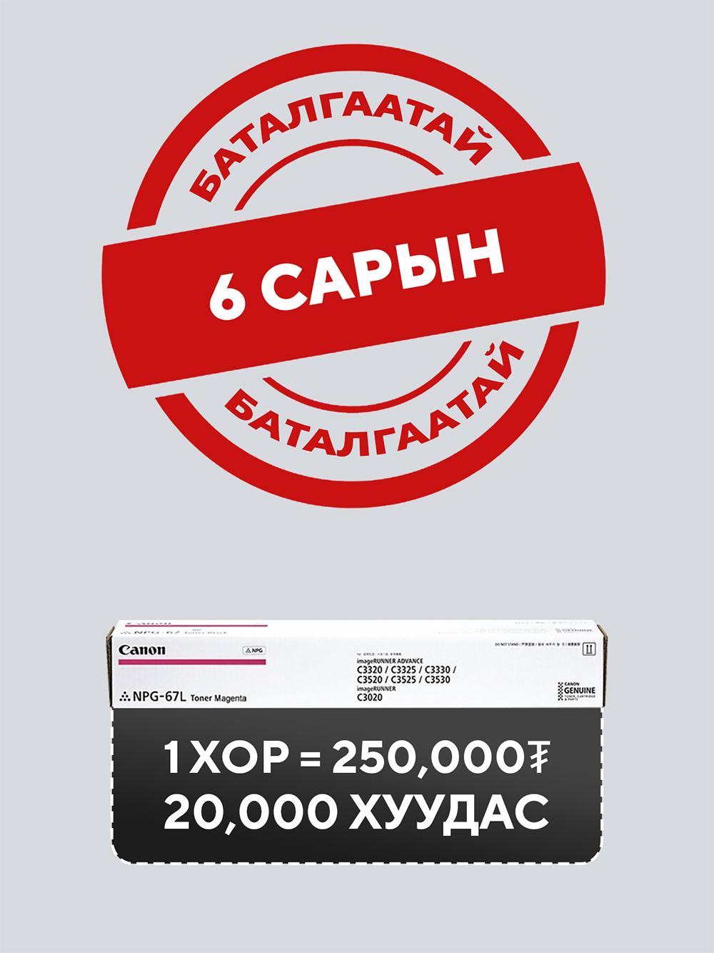 - 19 000 хуудас @5%(тухайн хуудасны 5 хувь өнгөтэй)